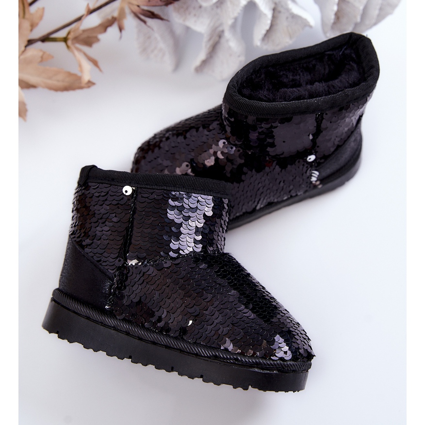 Detalii: FR1 Cizme De Zăpadă Călduțe Copii Cu Paiete Black Shard negru
