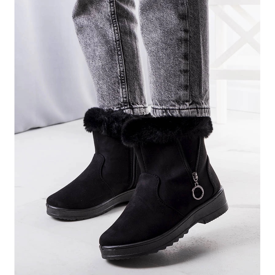 Detalii: Cizme de zăpadă căptușite negre cu fermoar Katalina negru