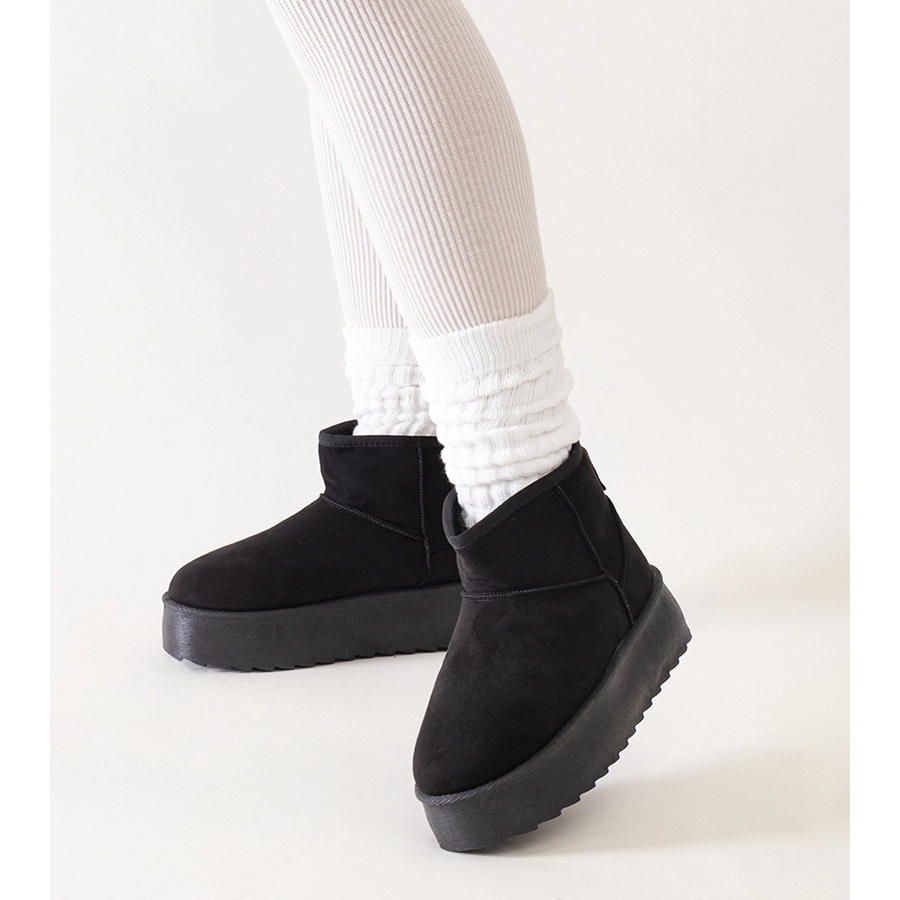Platforma înaltă, cu o înălțime de 4,5 cm, adaugă originalitate și personaj modern pantofilor, iar nasul rotund subliniază stilul lor la modă. Interiorul țesăturii izolate asigură confortul de a purta chiar și în cele mai reci zile, ceea ce face ca aceste cizme de zăpadă să nu fie doar cu o estetică, ci și o alegere funcțională.