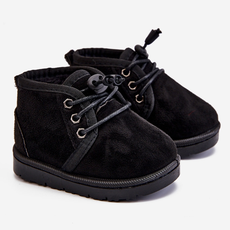 Cizme de zăpadă din dantelă pentru copii izolate cu blană - vânător (negru)