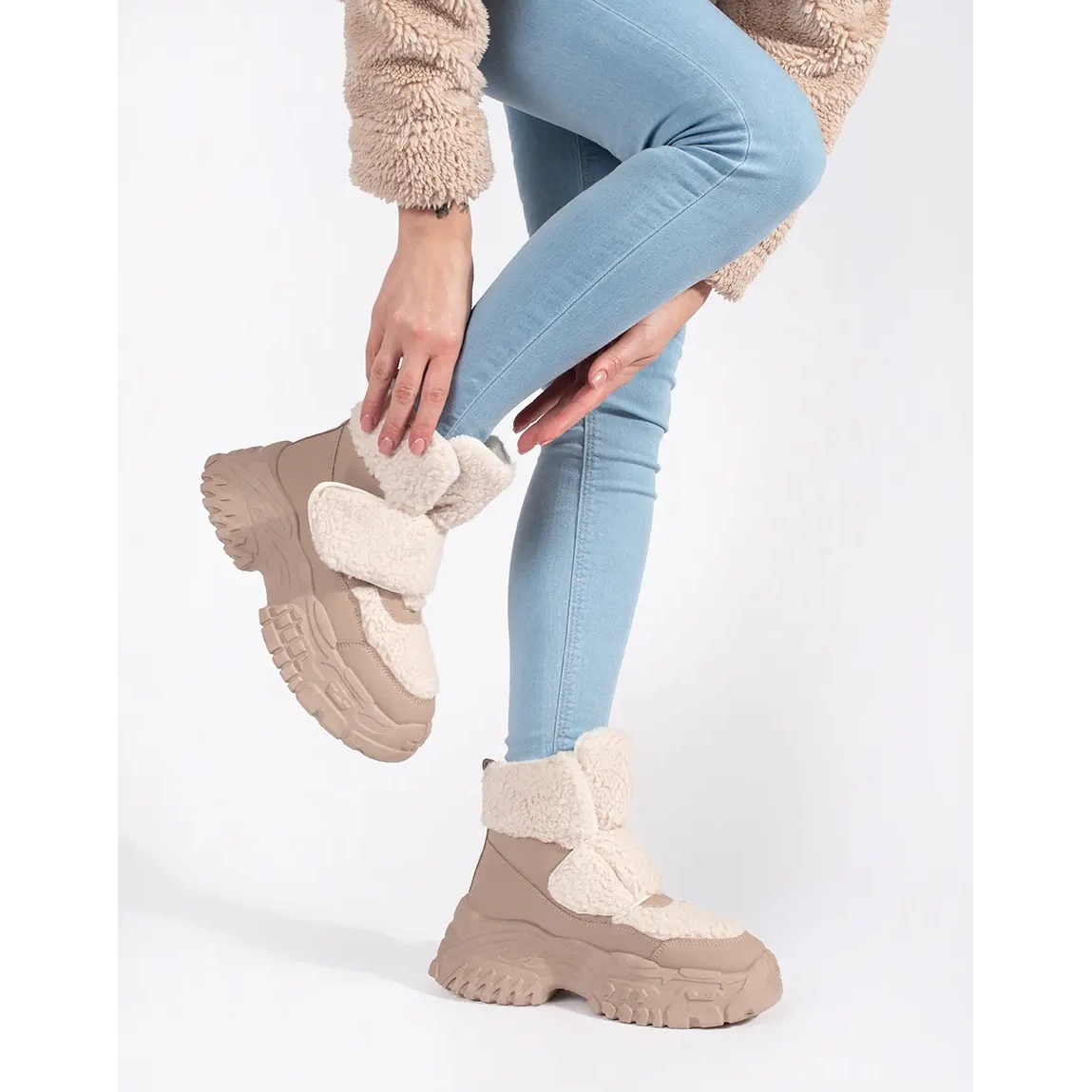 Vă prezentăm cizme de zăpadă bej pe platforma Seaster, care va fi o alegere excelentă pentru zilele de iarnă. Acești pantofi eleganți combină designul la modă cu funcționalitatea, oferind confort și căldură.