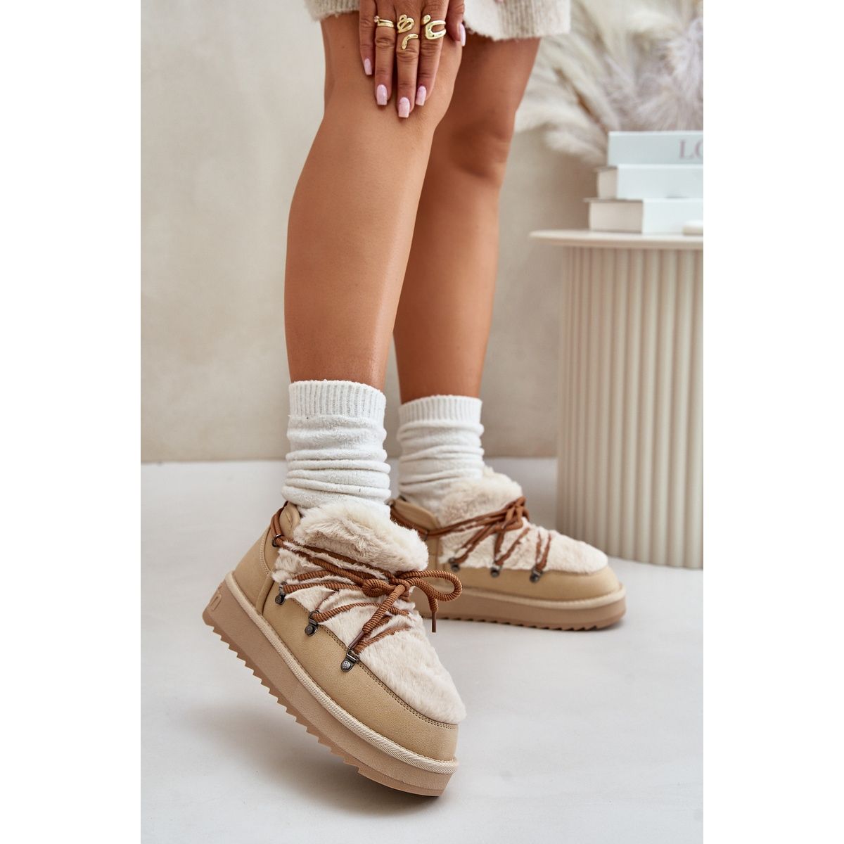 Partea din față a pantofilor este decorată cu o blană moale, ceea ce le oferă un personaj unic, iar șireturile cu mai multe poziții permit o potrivire perfectă a piciorului. Interiorul căptușit cu o căptușeală sintetică și blană garantează confortul și căldura, ceea ce este necesar în lunile reci.