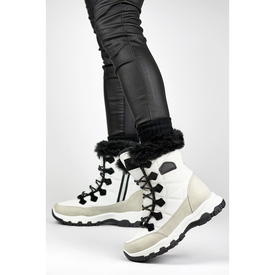 Detalii: Cizme de zapada dama cu blana si fermoar, alb 9093W