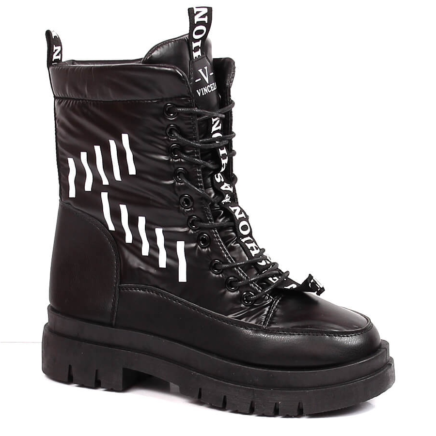 Detalii: Cizme de zăpadă damă cu șireturi și platformă Vinceza neagră negru