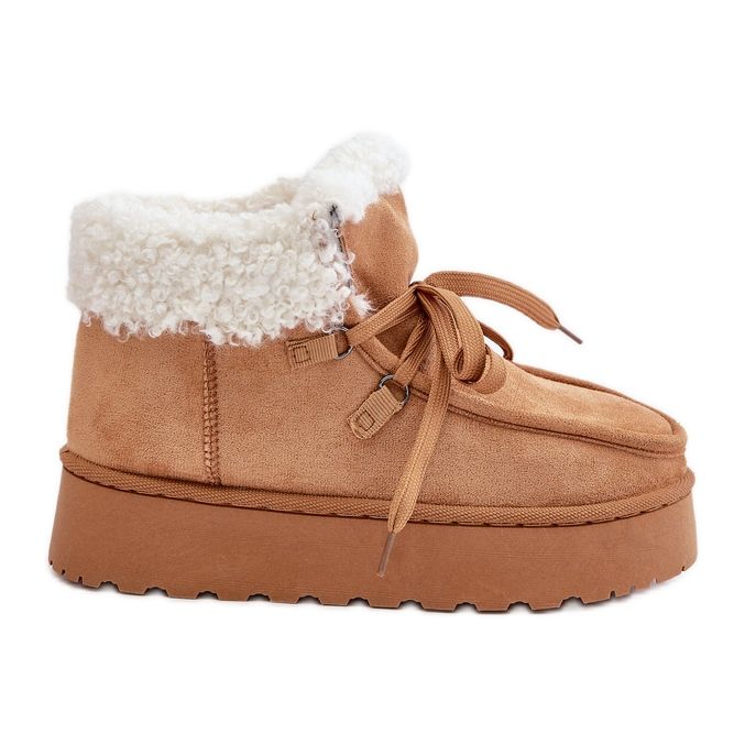 Cizmele de zăpadă pentru femei de pe platformă cu ciabelllae blana de cămile este o alegere excelentă pentru zilele de iarnă, combinând eleganța cu confortul. Fabricate din Eco Suede, acești încălțăminte maro nu numai că arată frumos, dar oferă și protecție completă împotriva terenului rece, datorită izolației de pe o platformă confortabilă, cu o înălțime de 3,5 cm.