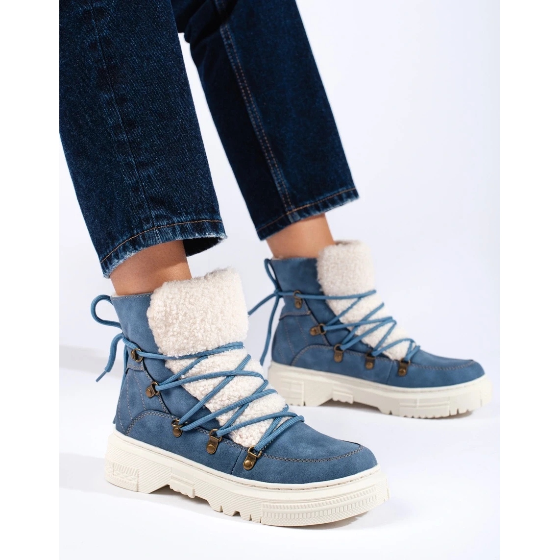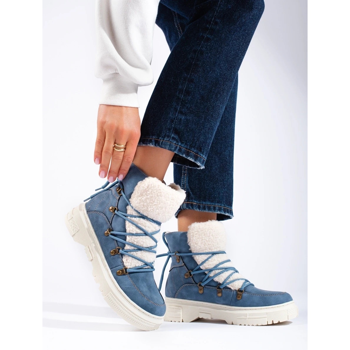 Detalii: Cizme de zăpadă de damă albastre cu piele de oaie albastru