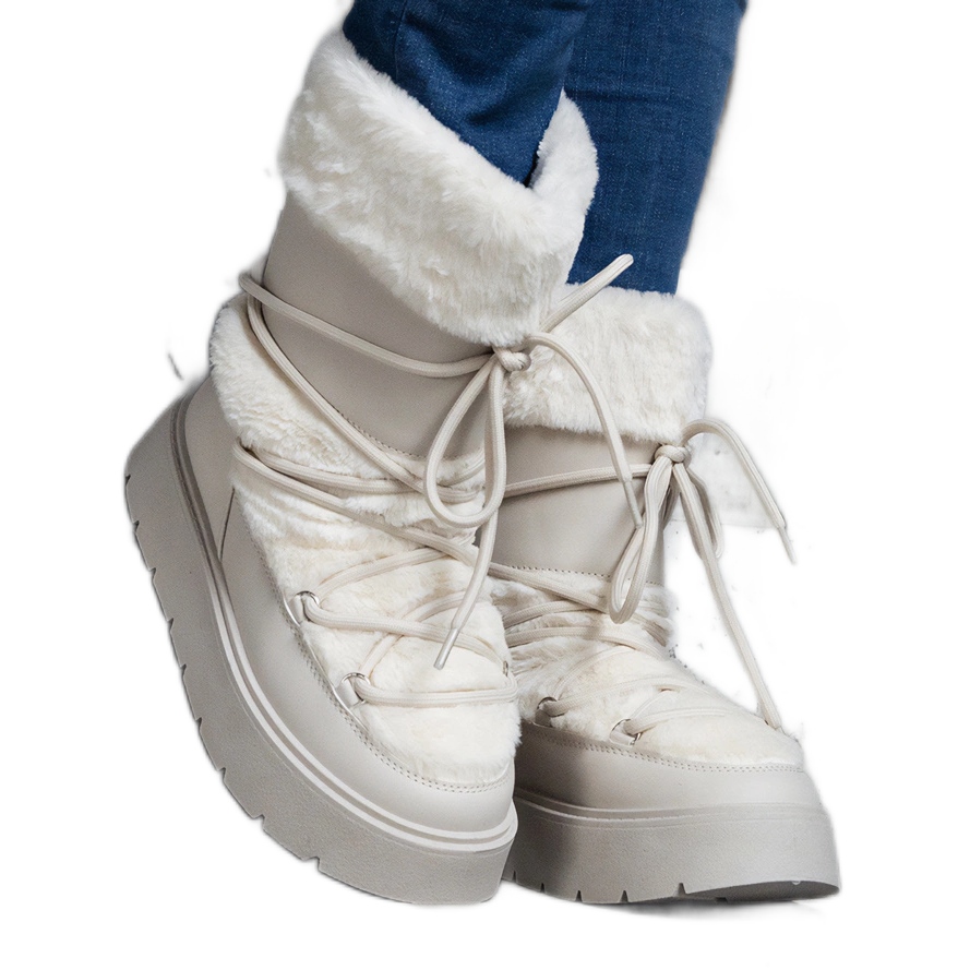 Detalii: Cizme de zăpadă de damă cu izolație bej deschis, decorate cu blană