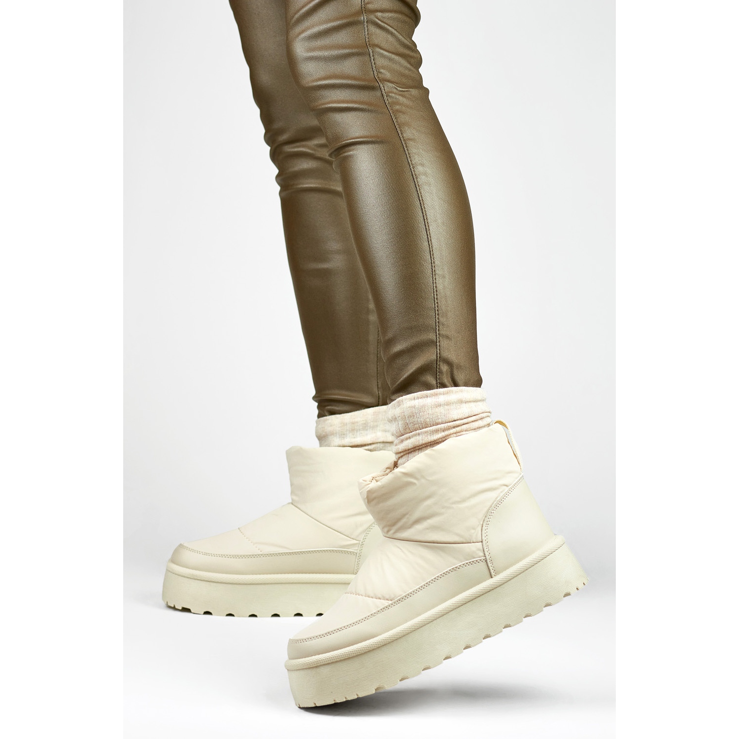 Comandați astăzi și bucurați -vă de căldură și comoditate în cizme elegante de zăpadă bej pe platformă.