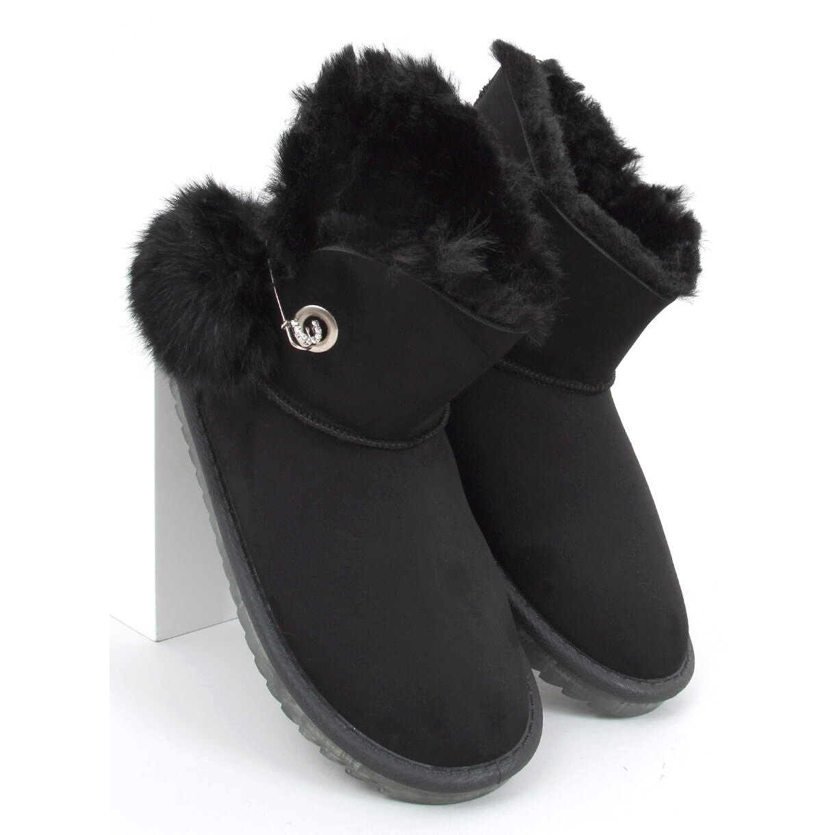 Căutați pantofi confortabili și calzi zile reci? Emuss pentru femei negre sunt o combinație de aspect clasic și soluții practice. Partea superioară din piele de căprioară din material ecologic și o blană moale în interior oferă confort termic, iar un știft de siguranță decorativ cu un pompom adaugă farmec și accent de modă.