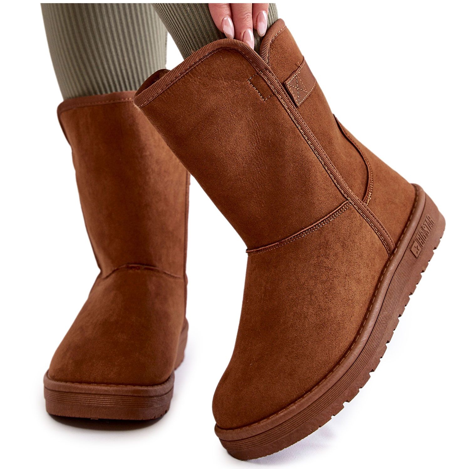 Cizme de zăpadă înalte pentru femei Star Big KK274616 - maro, izolat și gata pentru iarnă. Elegant, confortabil și practic: confecționat din țesătură plăcută la atingere, cu blană moale în interior, ceea ce asigură confortul termic chiar și în zilele reci. Platforma înaltă de 3,5 cm se izolează efectiv de pământul rece, iar talpa sintetică oferă o protecție bună împotriva umidității.