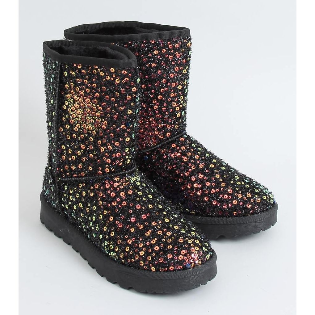 Cizmele de zăpadă multicolore, irisate BL177P Gold, negre, sunt încălțăminte perfectă pentru zilele de iarnă pentru femeile care doresc să îmbine stilul cu confortul. Acești emu la modă se remarcă prin croiala lor clasică, care capătă un farmec unic datorită paietelor strălucitoare care acoperă țesătura exterioară. Datorită lor, cu siguranță vei atrage atenția și colecțiile tale de iarnă vor străluci.