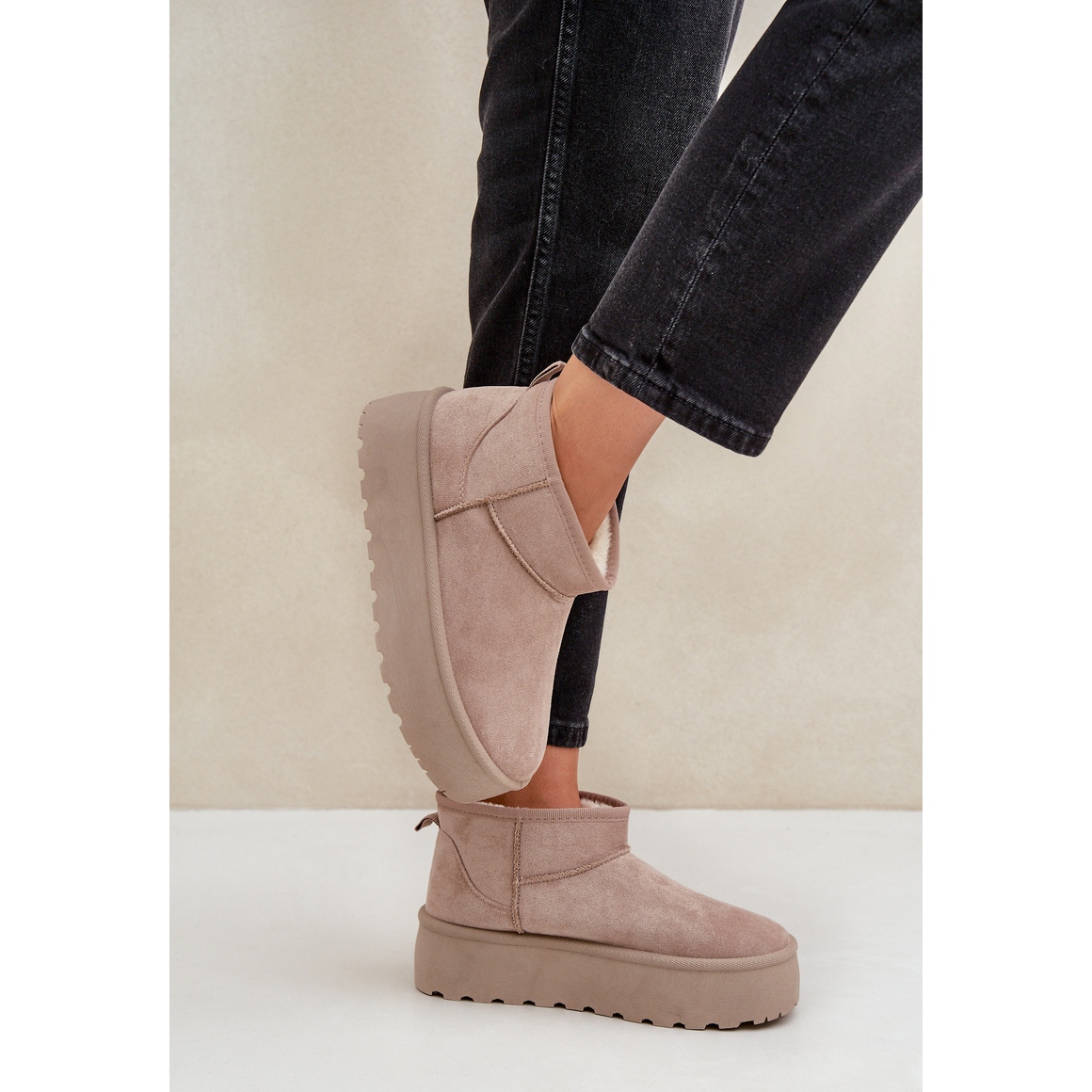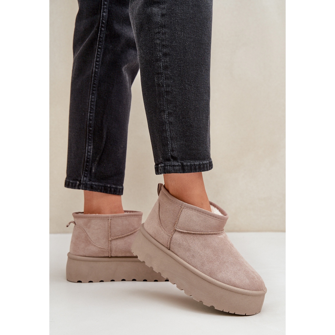 Te invităm să descoperi cizmele de zăpadă de damă cu platformă Beige - combinația perfectă de stil, confort și funcționalitate pentru toamna și iarna viitoare. Confectionati din piele intoarsa ecologica de inalta calitate, acesti pantofi la moda se remarca nu numai prin aspectul lor atractiv, ci si prin izolatia excelenta care iti va tine picioarele calde chiar si in zilele cele mai reci.