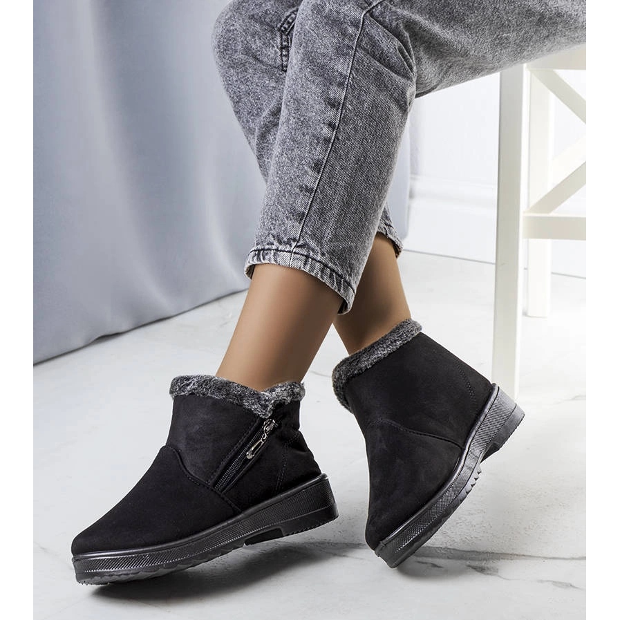 Cizmele de zăpadă Wren sunt o propunere pentru răcelile care nu doresc să renunțe la stil. Un superior clasic, negru, din piele de căprioară ecologică, blană moale în interior și o platformă stabilă de 3 cm asigură confortul toată ziua. Pantofii ajung la gleznă (evidențiați 13,5 cm), cu fermoar - ușor de introdus și de încadrat. Numerotare standard - Vă rugăm să alegeți dimensiunea obișnuită.