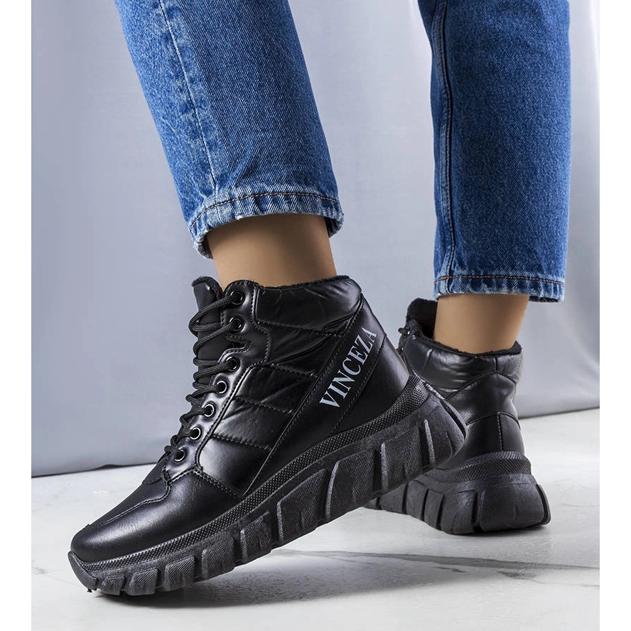 Acestea sunt cizme negre izolate pentru zapada - alegerea perfecta pentru zilele de iarna! Acești pantofi sport eleganti de damă se remarcă printr-o talpă înaltă, care nu numai că le adaugă caracter, dar, mai presus de toate, oferă o izolare excelentă de pământul rece. Datorita talpii groase de cauciuc, fiecare pas devine confortabil, iar tu te poti bucura de plimbarile de iarna fara sa-ti faci griji in privinta conditiilor meteo neplacute.