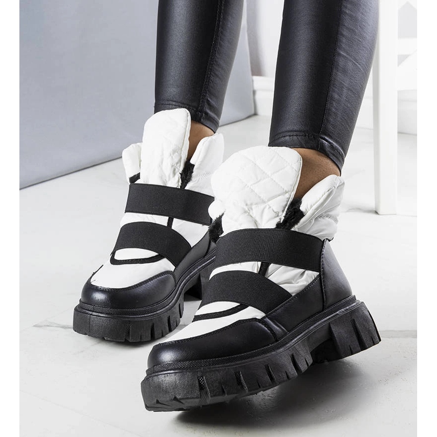 Cizme practice și la modă de zăpadă pentru femei - perfecte pentru zilele reci. Structura glisantă și blana groasă din interiorul căldurii și confortului, iar platforma înaltă, de 5 cm și talpa de cauciuc se izolează de la un pământ rece și oferă confort la fiecare pas. Talpa neagră contrastantă subliniază aspectul modern, minimalist în alb/negru.