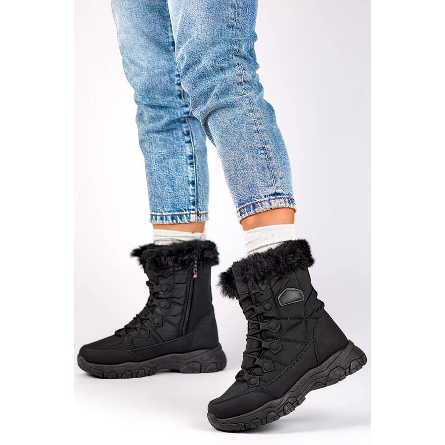Inna marka Cizme de zăpadă izolatoare de damă cu blană, negre 9093B negru