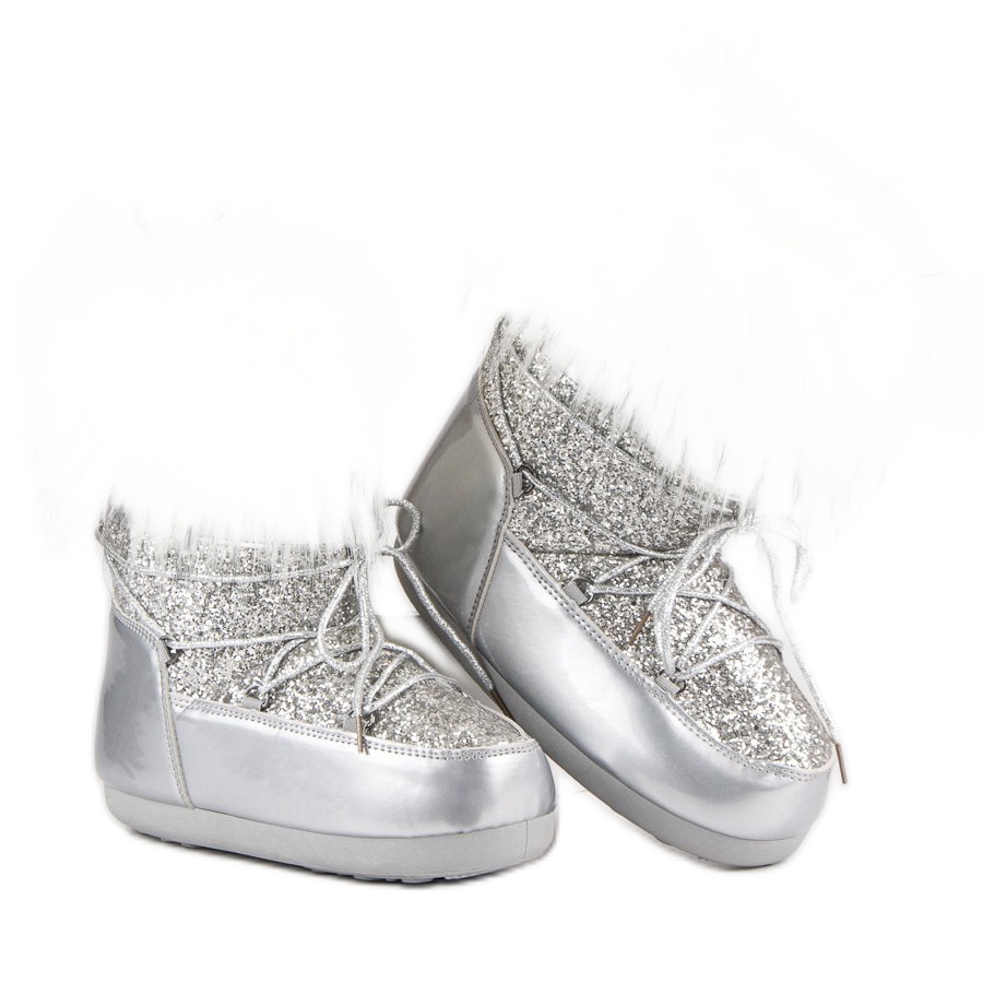 Cizmele de zapada se remarca prin finisajul lor impresionant cu sclipici argintiu, care atrage atentia si adauga stralucire. Blana moale este un avantaj in plus, asigurand confort si caldura in zilele mai reci. Fără modele decorative, acești pantofi păstrează un caracter minimalist, dar elegant.