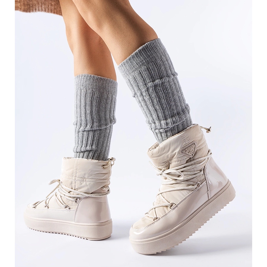Cizme de zăpadă lăcuite de bej Calogero (model Hy845-8)-stil și funcționalitate în zilele înghețate.
