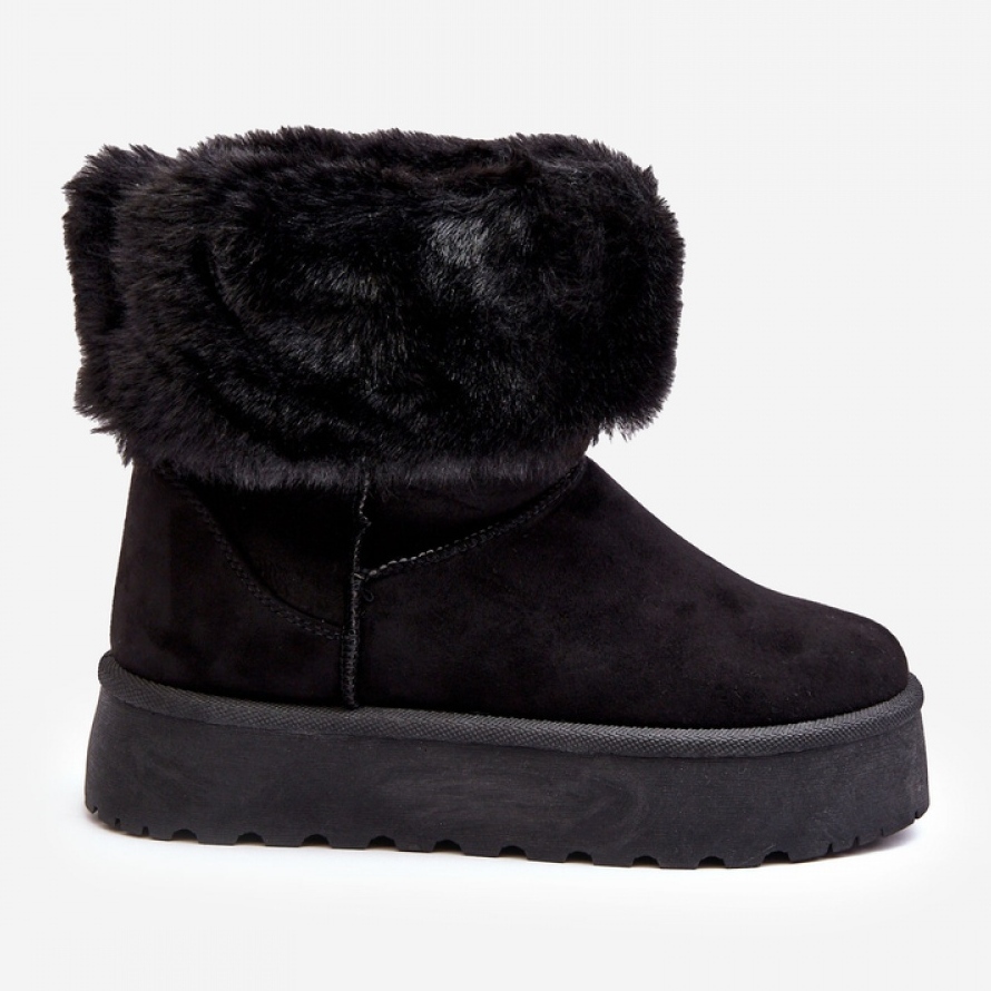 Interiorul cizmelor de zăpadă este izolat cu atenție cu blană groasă, ceea ce va oferi căldură chiar și în cele mai reci zile. Culoarea lor neagră universală le face ușor combinate cu diverse ținute. Datorită structurii inserate și a atingerii gleznei, a pune aceste pantofi este extrem de simplu și confortabil, ceea ce va fi apreciat de fiecare femeie care apreciază confortul.