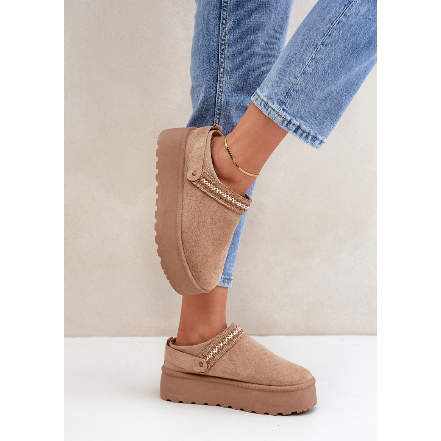 Cizmele de zăpadă stilate din piele de căprioară ecologică sunt o alegere perfectă pentru zilele mai reci. Montat pe o platformă. Cureaua din spatele pantofului va crește stabilizarea piciorului. Izolat cu blană moale și groasă. Partea superioară a căsuței este decorată cu broderie, ceea ce le conferă un farmec unic. Ar trebui să ai acest design extrem de elegant în garderoba ta!