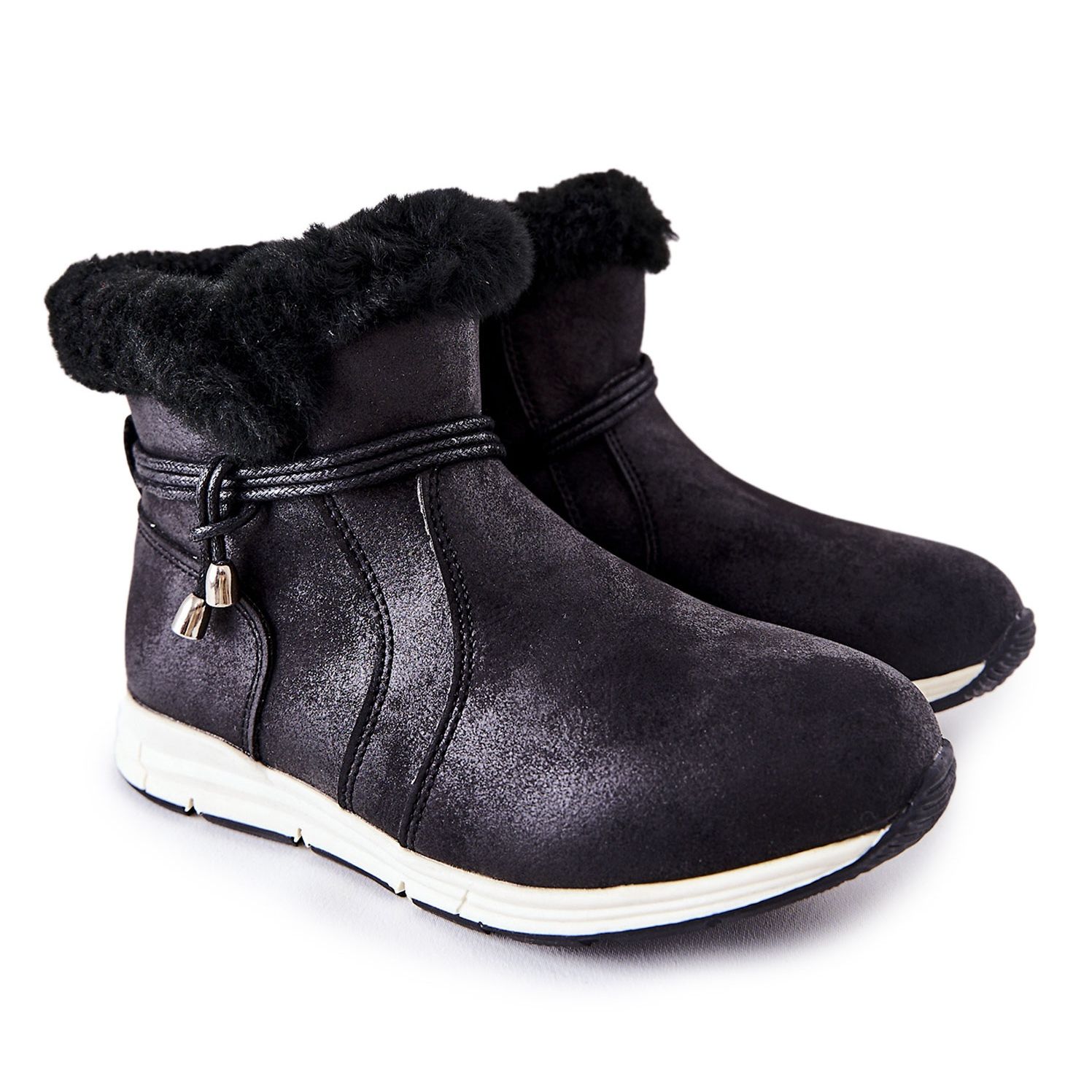 Cizme pentru copii Cizme de zăpadă Big Star BB374056BS - Negru, cald și elegant, perfect pentru zilele reci. Fabricate din piele ecologică din piele de căprioară, cu izolație sub forma unei pături moi de încălțăminte, acestea oferă confort și protecție împotriva frigului. Fixat cu un glisor, cu o sfoară decorativă la partea superioară și logo -ul mare al stelei din castel - practic și estetic.