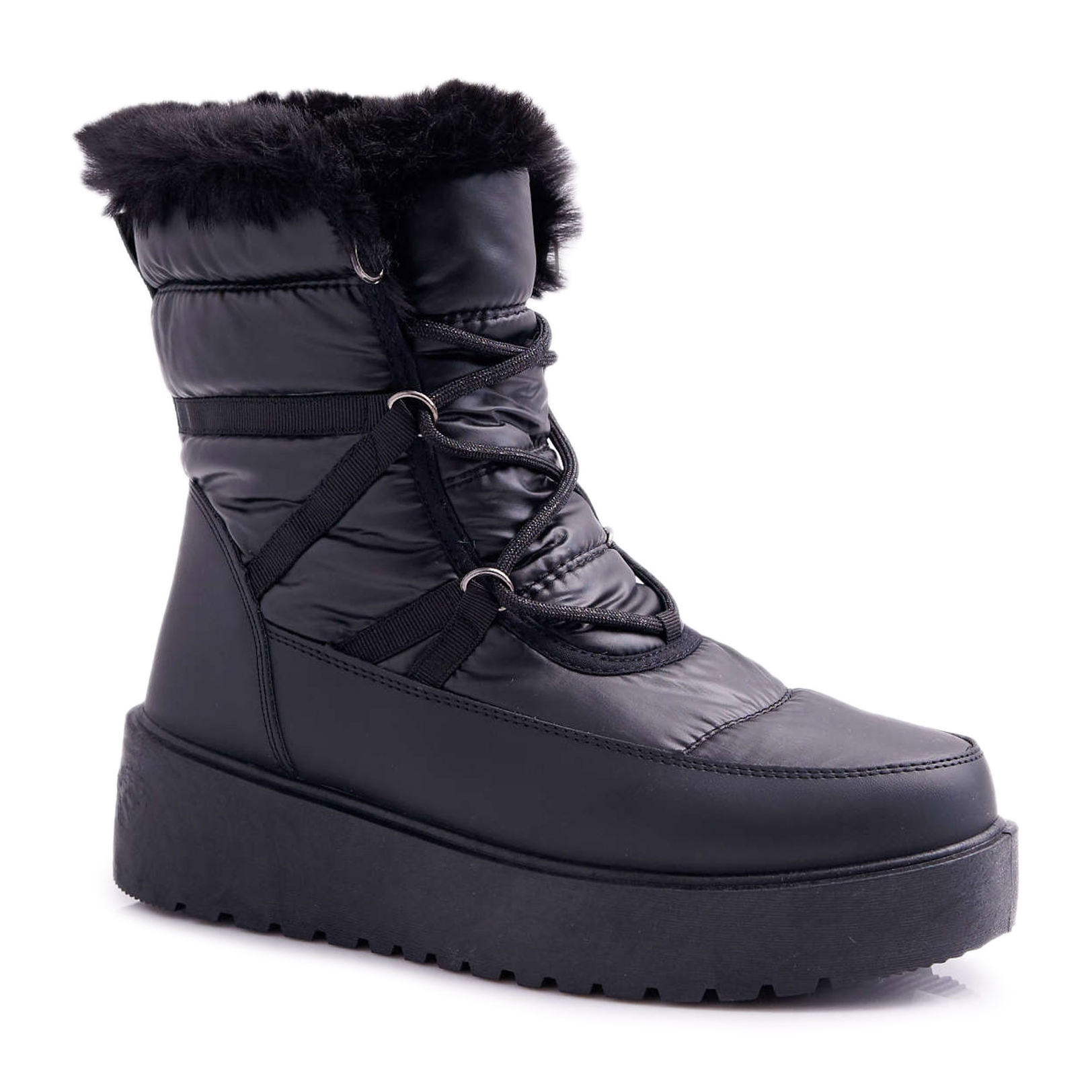 Interiorul este izolat cu blana moale si asigura confort termic, ceea ce inseamna ca picioarele tale vor ramane calde chiar si pe vremea cea mai rece. Căptușeala înaltă (17 cm) te izolează perfect de frig, iar talpa sintetică (5 cm) garantează o bună aderență pe diverse suprafețe. Închiderea cu șireturi permite ajustarea precisă a pantofilor la picior, ceea ce mărește confortul purtării acestora.