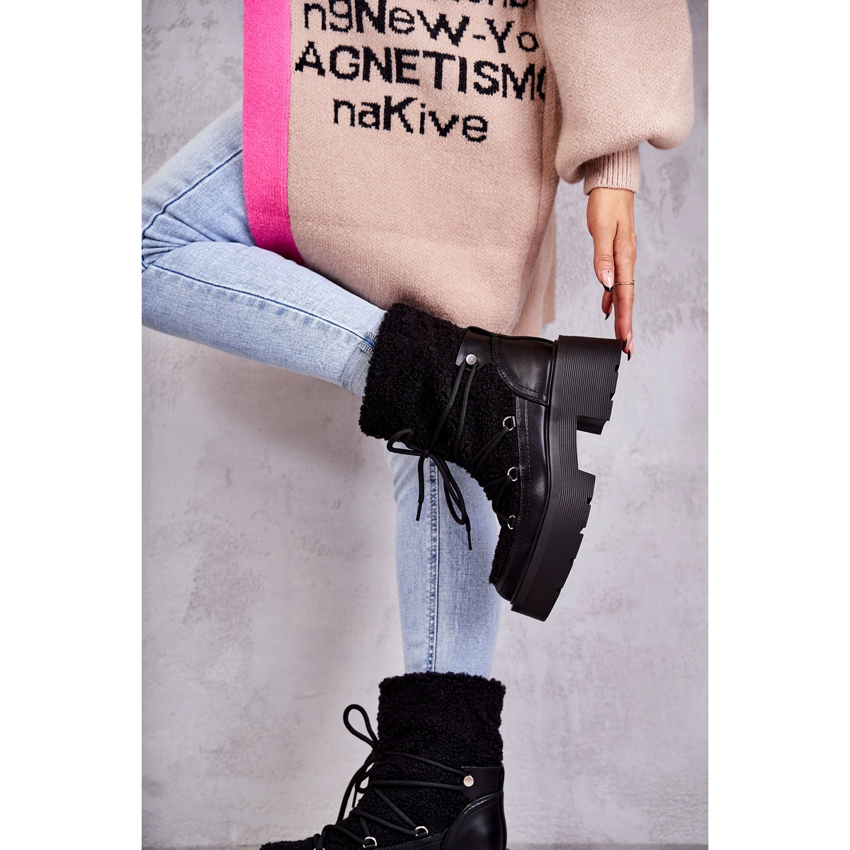 Detalii: Cizme de zăpadă pentru femei cu o haină de piele de oaie neagră negru