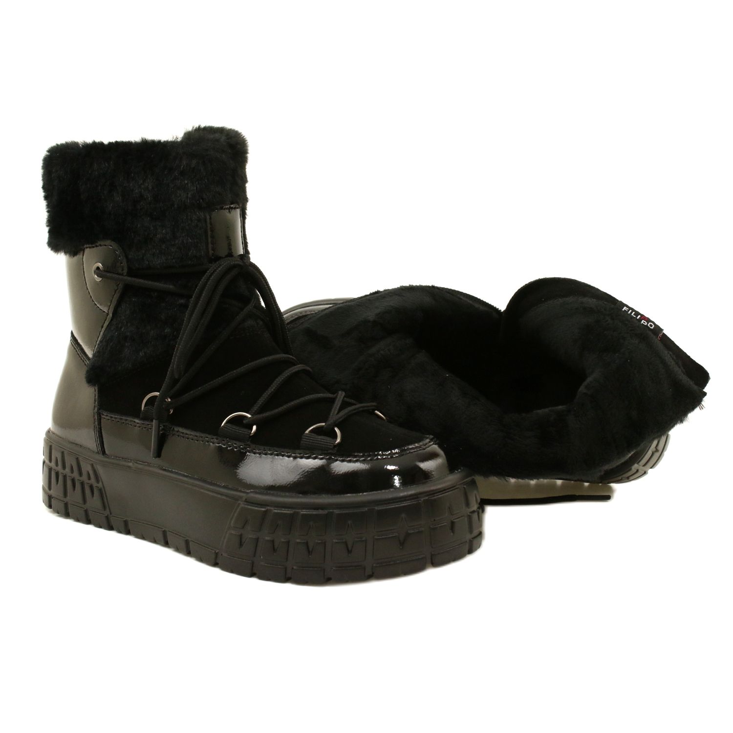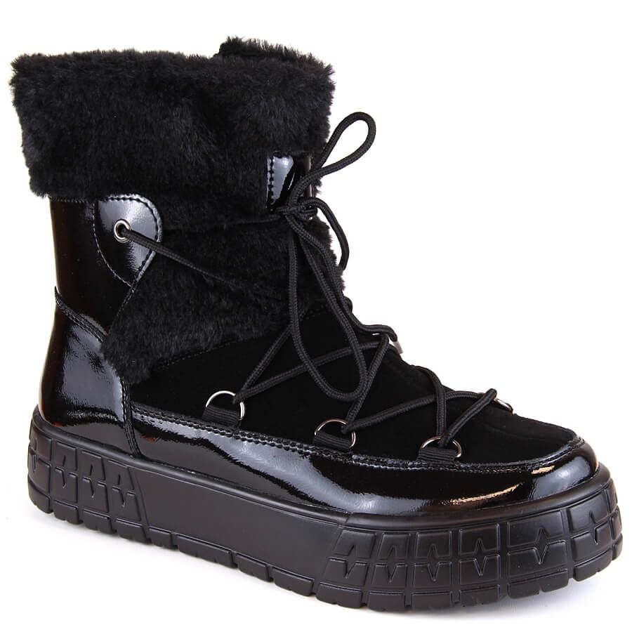 Cizme de zăpadă pentru femei Filippo cu blană - lăcuit, negru