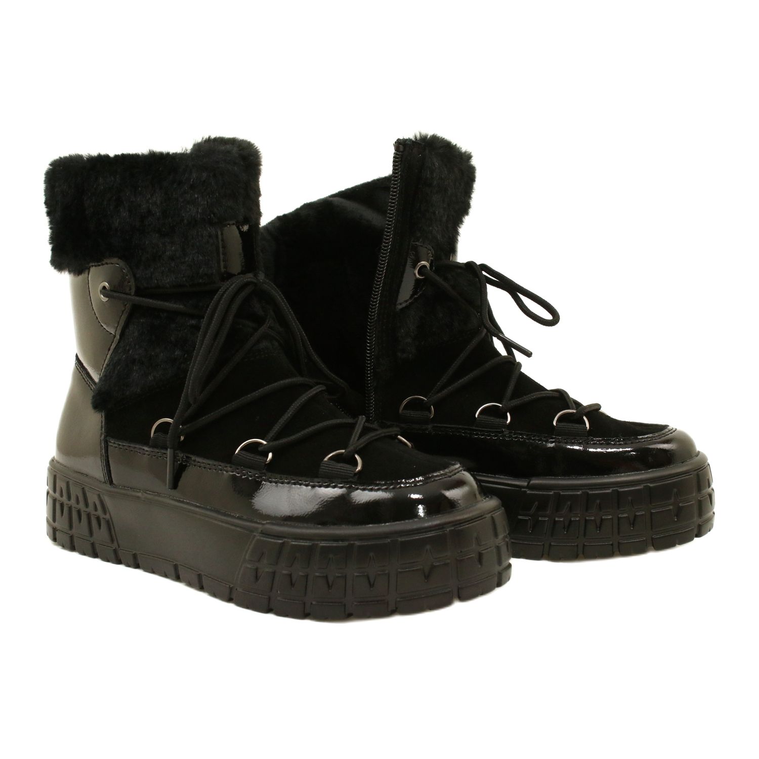 - Model: Cizme de zăpadă cu șireturi și blană lacuită