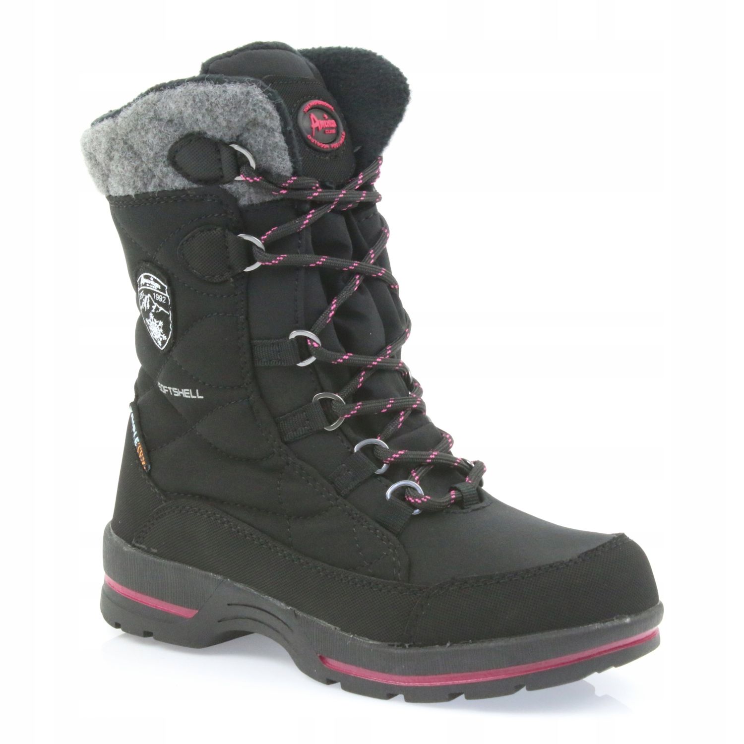 Detalii: American Club Cizme de zăpadă softshell negre cu membrană americană SN19 / 20 negru roz gri