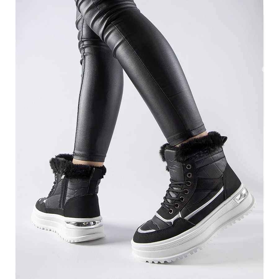 Cizme de zăpadă cu sporturi negre - stil și confort pentru zile mai reci
