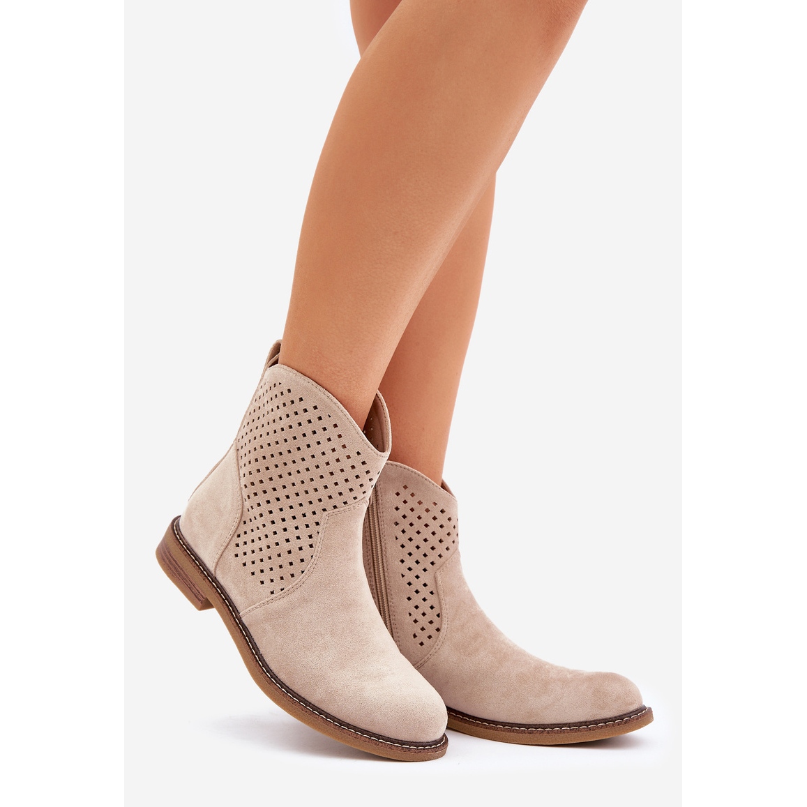 Upper -ul deschis oferă nu numai lejeritate, ci și respirabilitate excelentă, ceea ce permite picioarelor să respire. Datorită degetelor rotunjite, cizmele arată subtil, iar călcâiul lor universal, plat, cu o înălțime de 3 cm oferă confort pe parcursul zilei de purtare. Fixerul cu fermoar face ca punerea și îndepărtarea pantofilor rapid și confortabil.