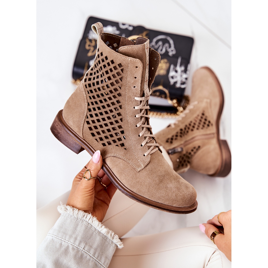 Va prezentam botinele cu siret din piele ajurata de la Nicole intr-o frumoasa culoare maro deschis. Aceste cizme unice de la marca poloneză Nicole sunt o combinație a ultimelor tendințe cu finisaje de calitate excelentă. Fabricate în întregime din piele naturală, garantează durabilitatea și confortul la purtare.