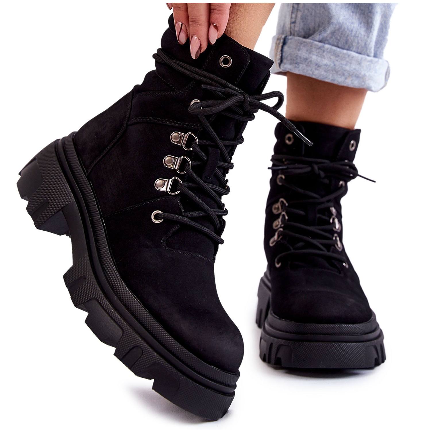Detalii: Cizme din piele caldă cu șireturi Merisha neagră negru