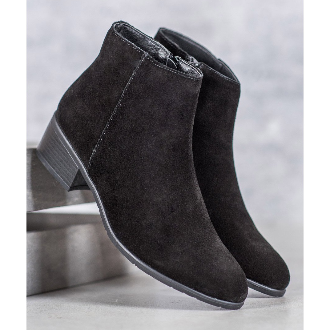Botinele Filippo Classic din piele de culoare neagră sunt o alegere perfectă pentru femeile care apreciază eleganța și confortul în stilul de zi cu zi. Aceste botine la modă, din piele naturală de înaltă calitate, impresionează nu numai prin durabilitate, ci și prin textura plăcută la atingere. Culoarea clasică neagră face ca încălțămintea să se potrivească perfect cu o varietate de ținute - de la casual la mai elegante.