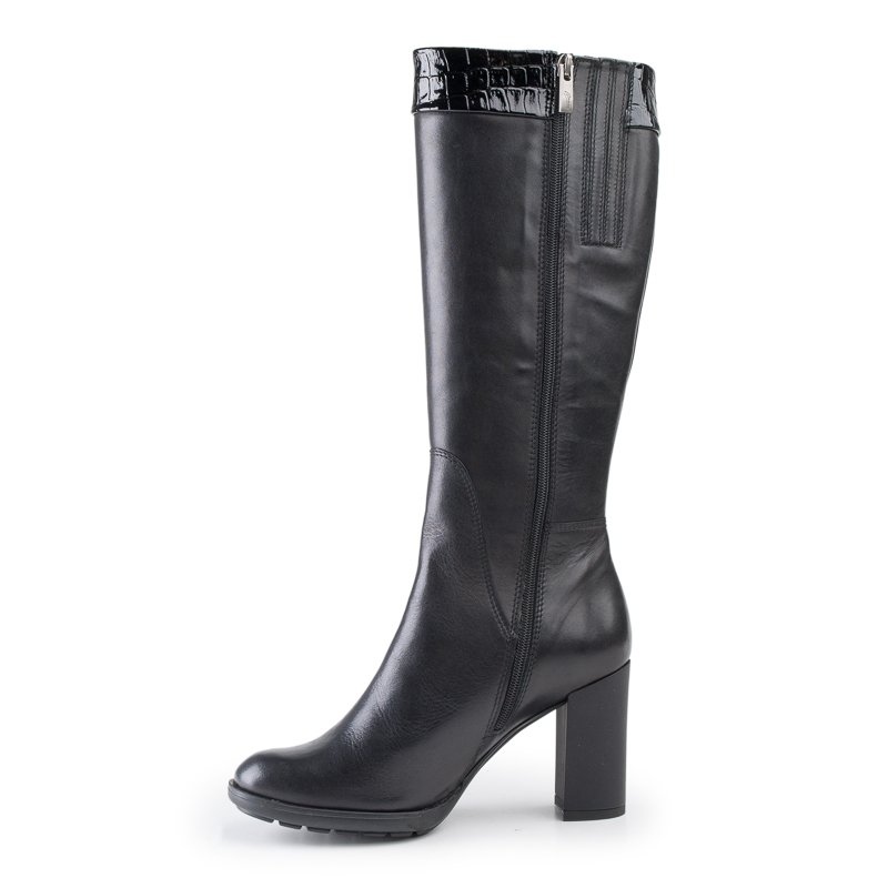 Descoperiți eleganța și confortul într-unul - cizme negre de la Marco Shoes, care încântă nu numai prin stil, ci și prin calitatea manoperei. Fabricate din piele naturală integrală, aceste cizme protejează perfect împotriva frigului, asigurând în același timp confort în zilele mai reci. O aplicație subtilă de piele de șarpe le adaugă un caracter unic, potrivindu-se perfect cu cele mai recente tendințe de modă.