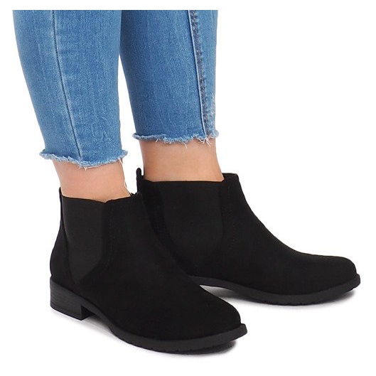 Inna marka Cizme din piele de căprioară cu elastic C-5 negru