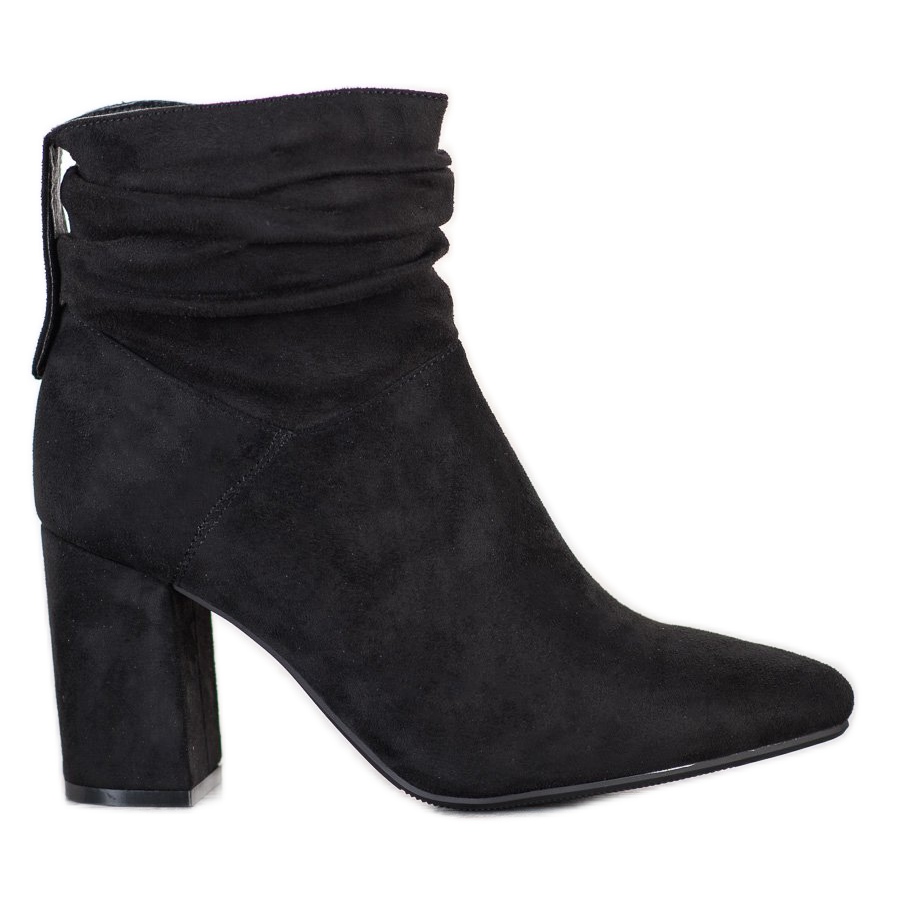 **Botine SHELOVET din piele intoarsa cu toc inalt, negre**