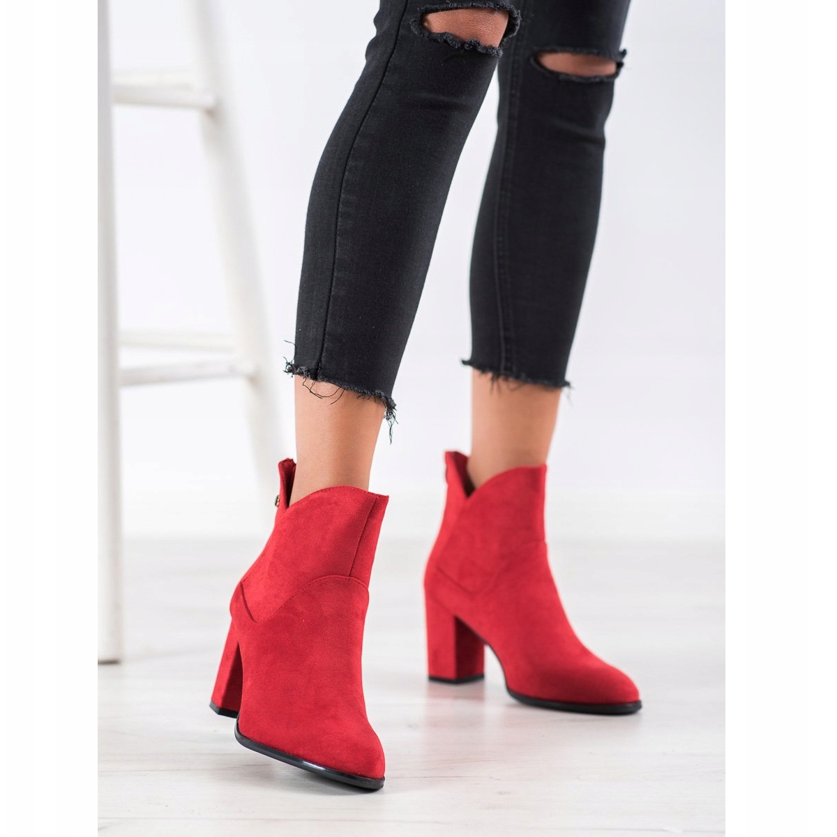 Detalii: SHELOVET Cizme din piele de căprioară cu toc înalt roșu