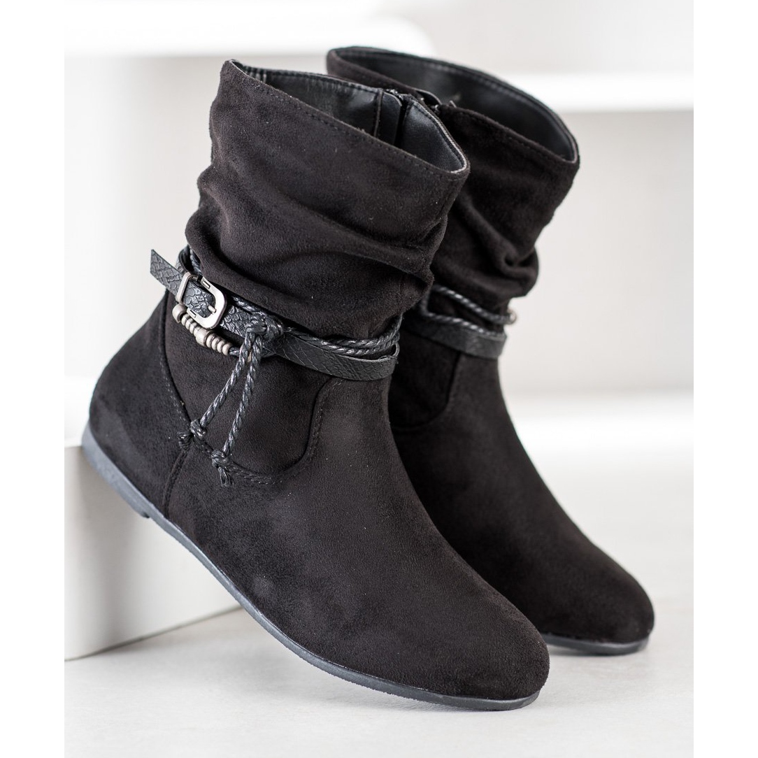 Va prezentam botine la moda din piele intoarsa de la renumitul brand SHELOVET, care sunt o alegere perfecta pentru zilele de toamna si iarna. Aceste botine negre elegante, din piele intoarsa ecologica, vor incanta orice iubitor de stil casual.
