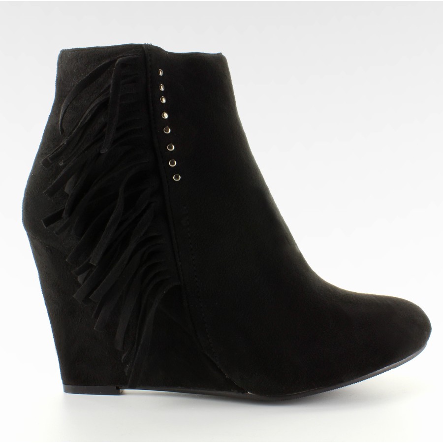 Detalii: Cizme din piele de căprioară pe o pană cu franjuri Negru