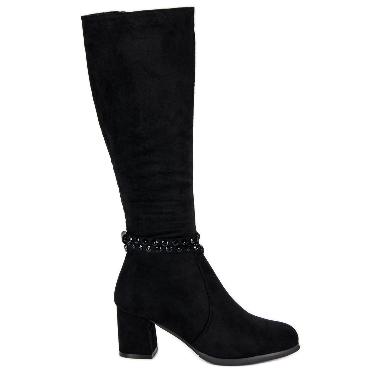 Cizmele cu toc înalt, stilate și elegante, de piele de căprioară, în negru, sunt o alegere perfectă pentru fiecare femeie la modă care vrea să iasă în evidență în mulțime. Realizate din piele intoarsa ecologica, acestea imbina confortul si designul unic. Aceste cizme până la genunchi vor deveni cu siguranță un element indispensabil al garderobei tale de toamnă.