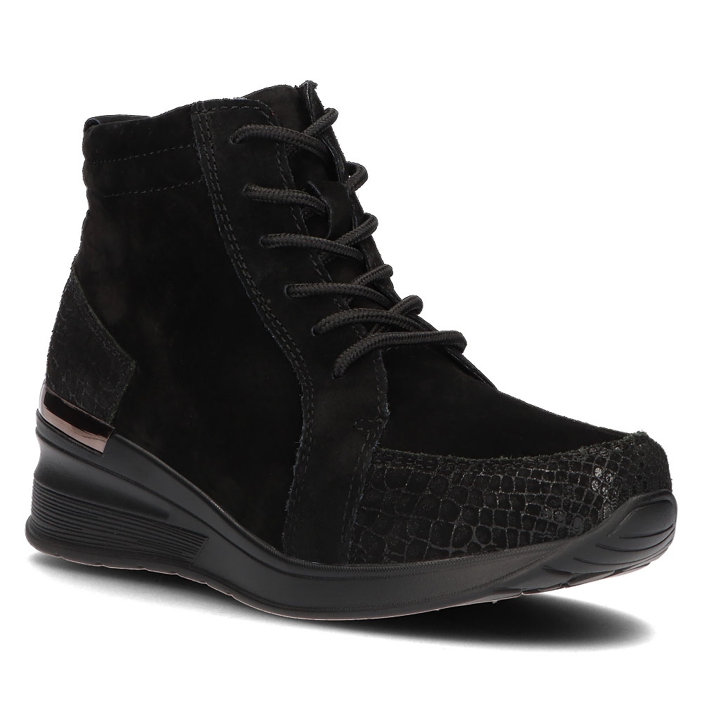 Partea superioară a cizmelor are 8 cm înălțime și este confecționată din piele ecologică de înaltă calitate, asigurând nu numai estetica, ci și durabilitatea. Nasul rotund îl face confortabil, iar confortul purtării este sporit de inserția din piele. În plus, cizmele sunt izolate, ceea ce le face o alegere ideală pentru zilele mai reci.