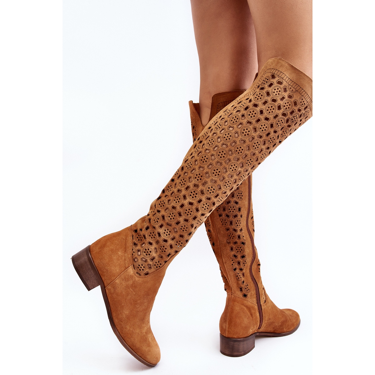 - Model: Cizme din piele intoarsa cu model camel ajurat