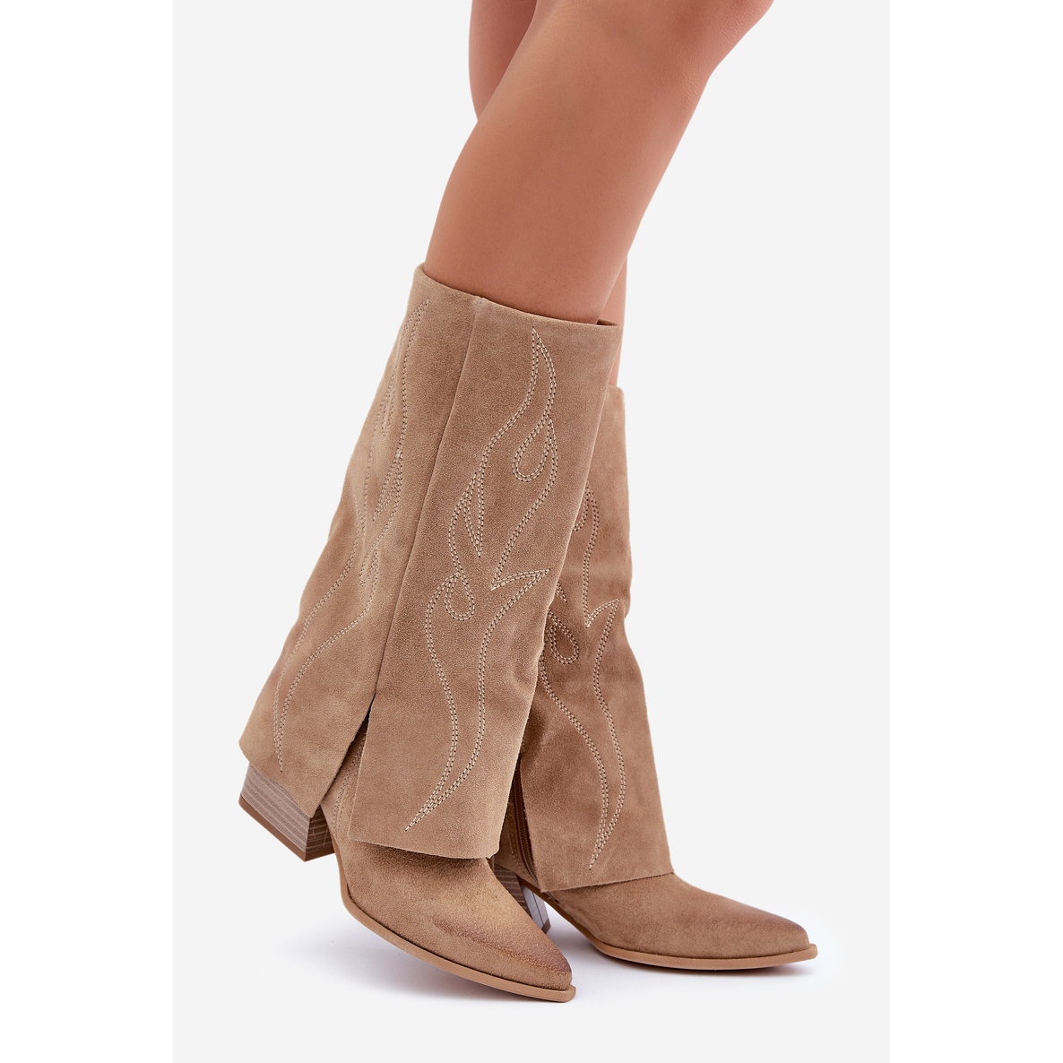 Zazoo Cizme din piele intoarsa la jumatatea gambei cu toc intors in sus Bej Zazoo 3487