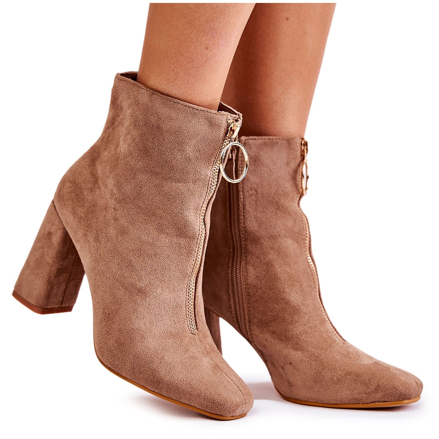 Detalii: PG1 Cizme din piele intoarsa pe toc inalt cu fermoar decorativ lisette bej maro