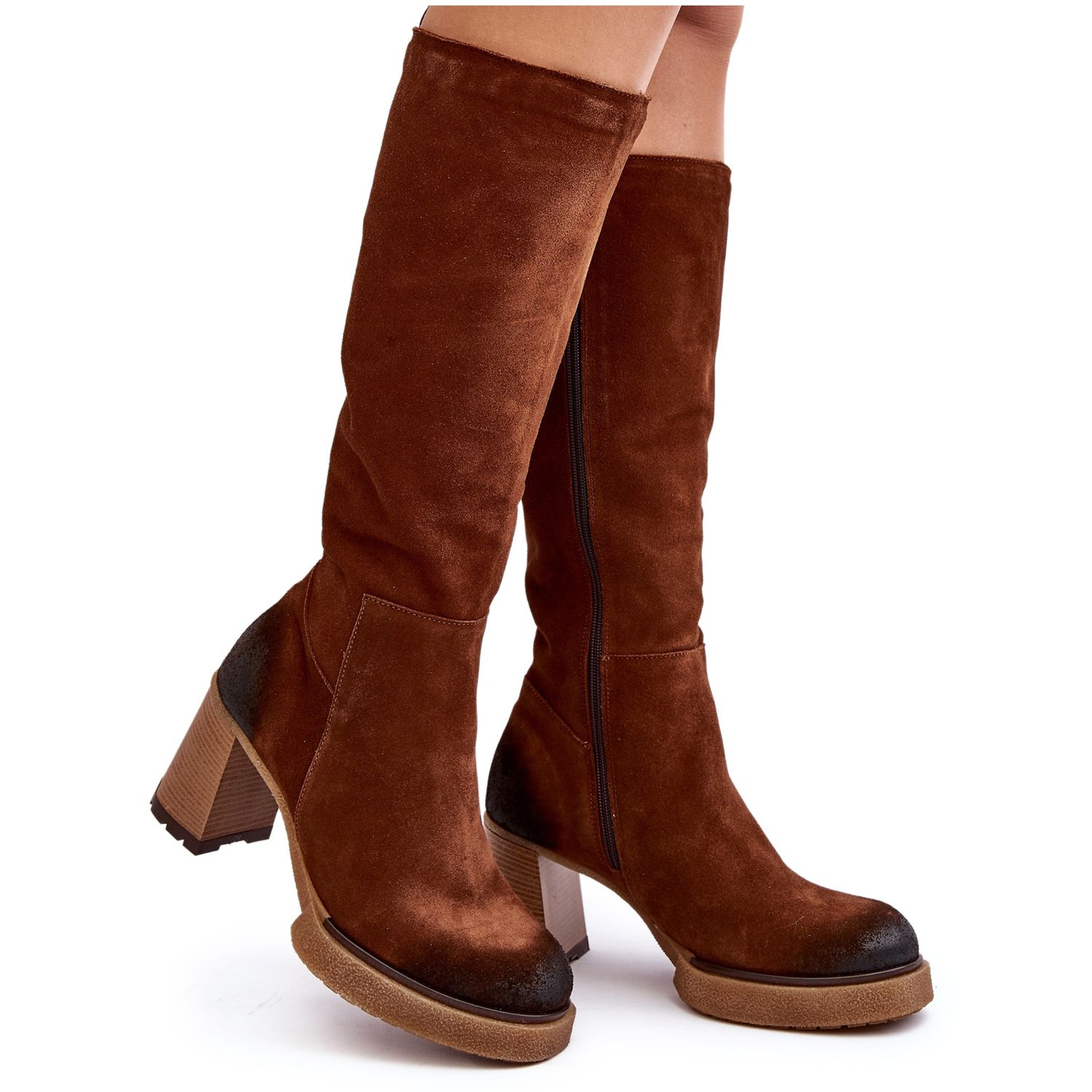 - Model: Cizme din piele intoarsa pentru dama cu toc inalt deasupra genunchiului