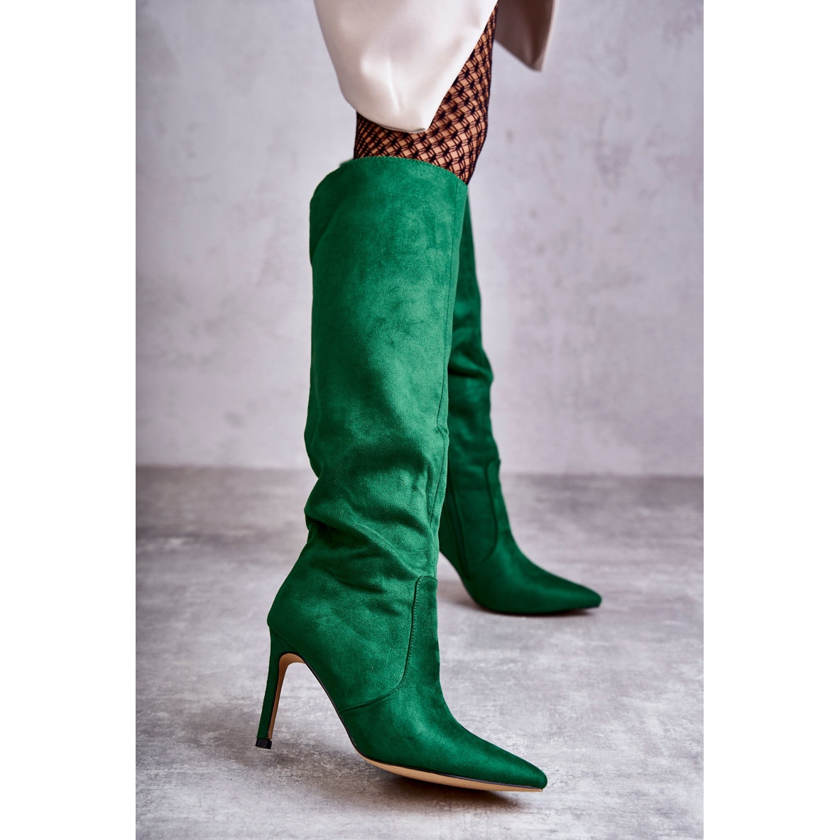 Detalii: FS1 Cizme din piele intoarsa verde Carite cu toc inalt