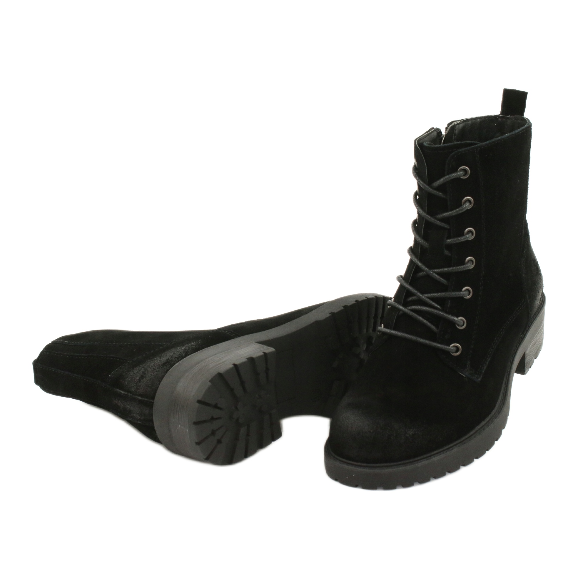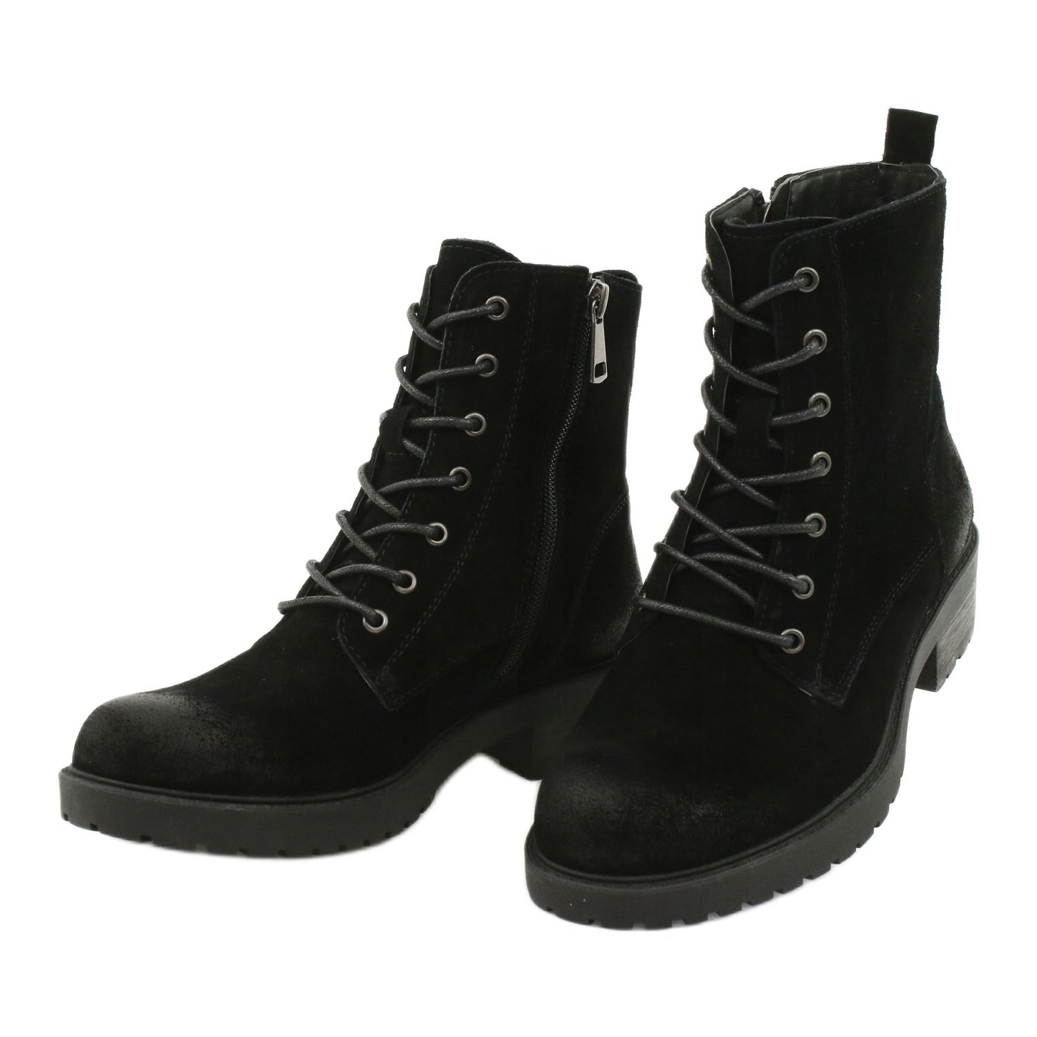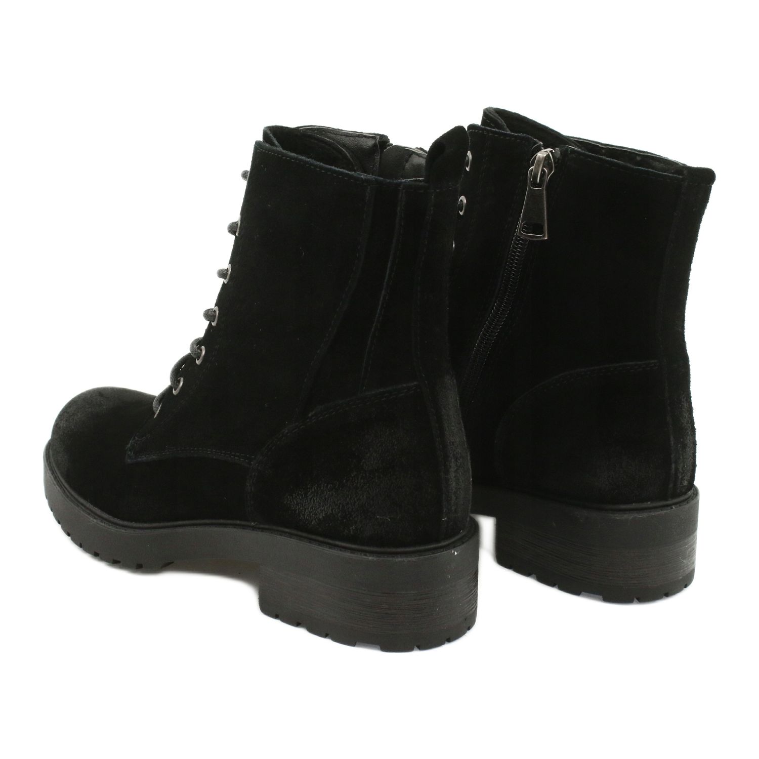 Culoarea neagra si folosirea pielii de piele intoarsa naturala dau pantofilor un caracter elegant care poate fi usor combinat cu diverse elemente ale garderobei tale. Varful rotund si inchiderea cu siret si fermoar adauga practic si stil. În plus, înălțimea superioară de până la 15 cm oferă sprijin gleznei și un aspect la modă.