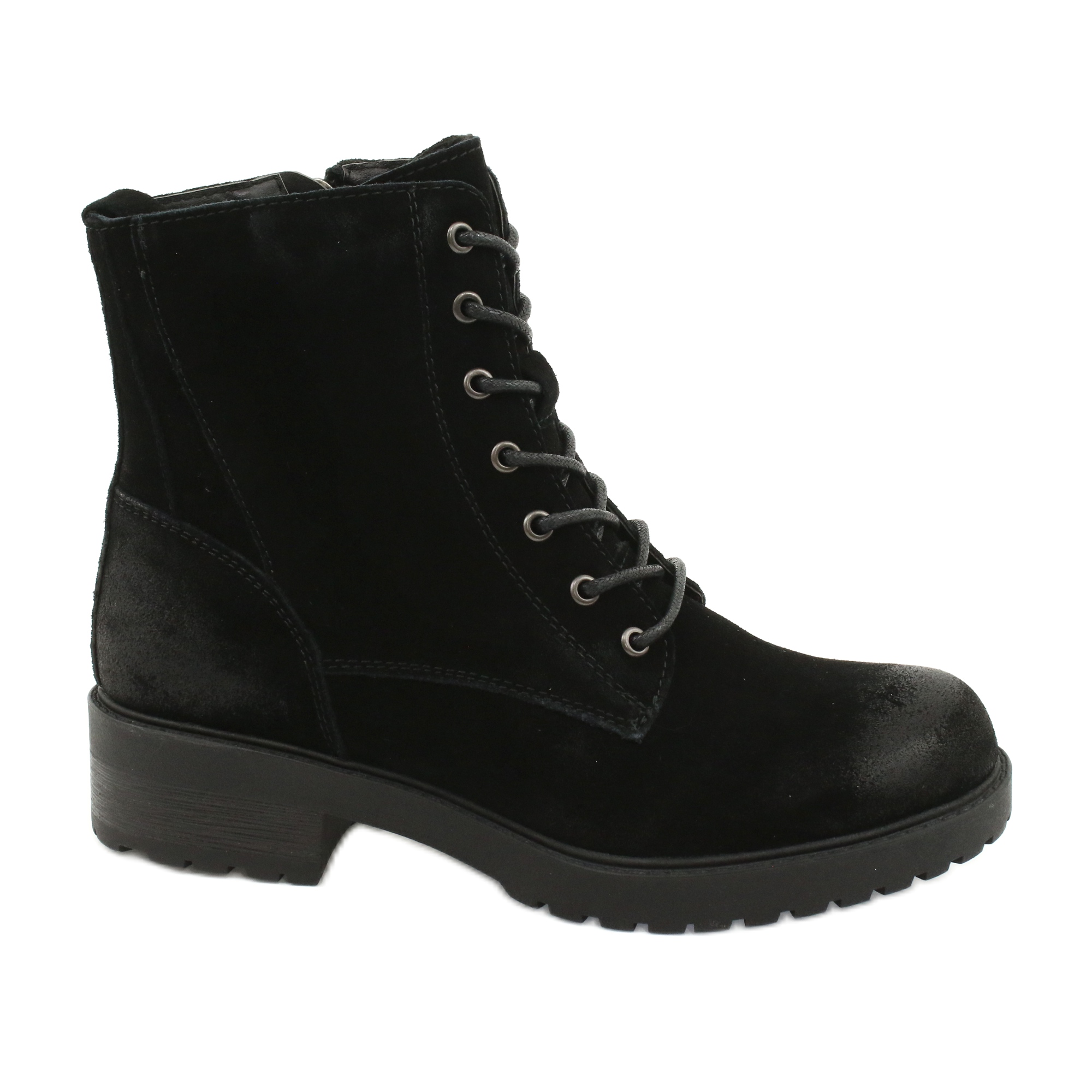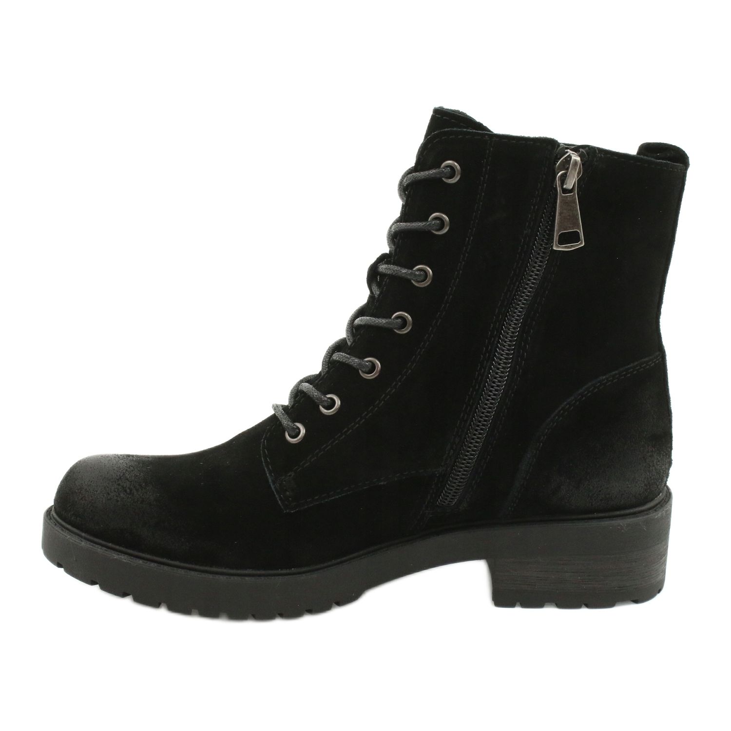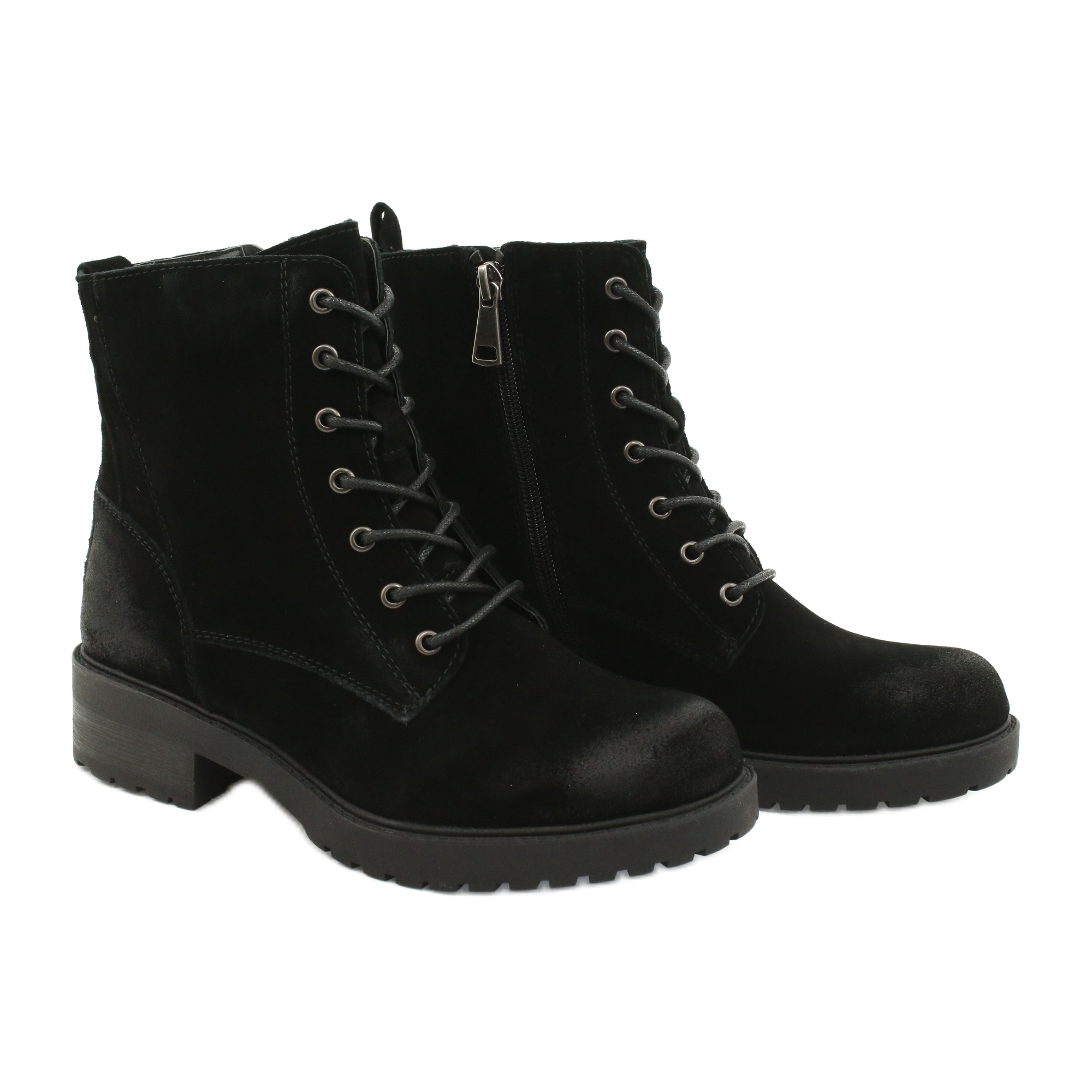 Culoarea neagra si folosirea pielii de piele intoarsa naturala dau pantofilor un caracter elegant care poate fi usor combinat cu diverse elemente ale garderobei tale. Varful rotund si inchiderea cu siret si fermoar adauga practic si stil. În plus, înălțimea superioară de până la 15 cm oferă sprijin gleznei și un aspect la modă.
